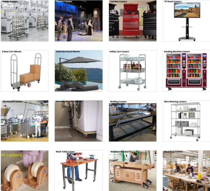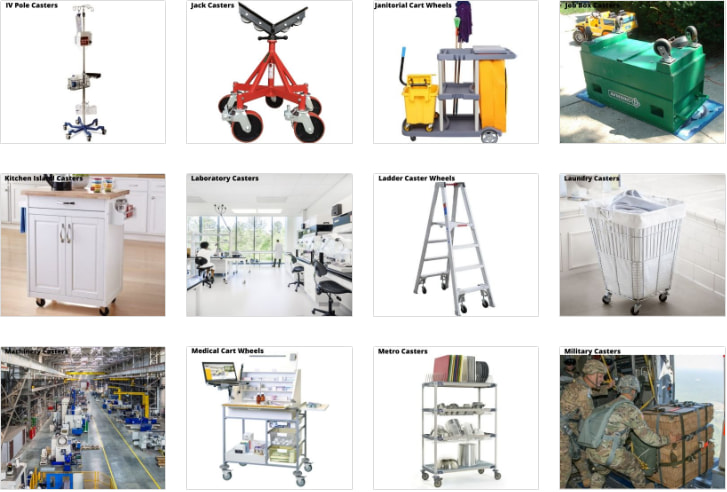 19. Industrial Equipment Cart Casters — Multi-purpose casters for maintenance and tool carts.