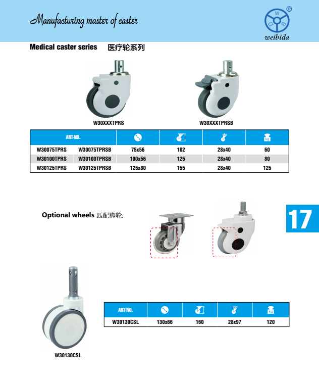 Medical Plastic Caster is widely using in hospital beds and hospital medical equipment.