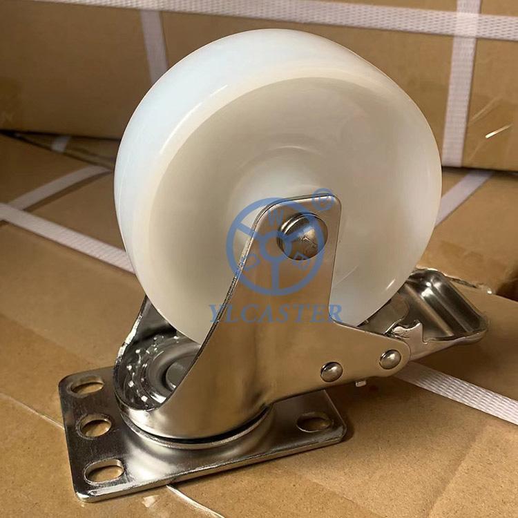 3inch stainless steel swivel type caster frames with double brake, one of the medium duty caster bracket. It's made of stainless steel, good looking and waterproof. Beside this, we also have the 4inch and 5inch ss rotating locking caster frames.