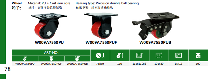 500 kg heavy duty low profile rigid caster