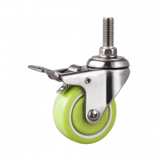 Light duty stainless steel pu threaded stem swivel caster with total brake