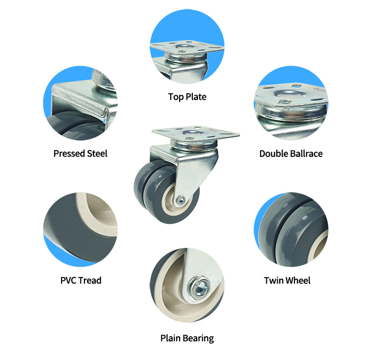 OEM 2 inch light duty Gray PVC swivel twin-wheel caster