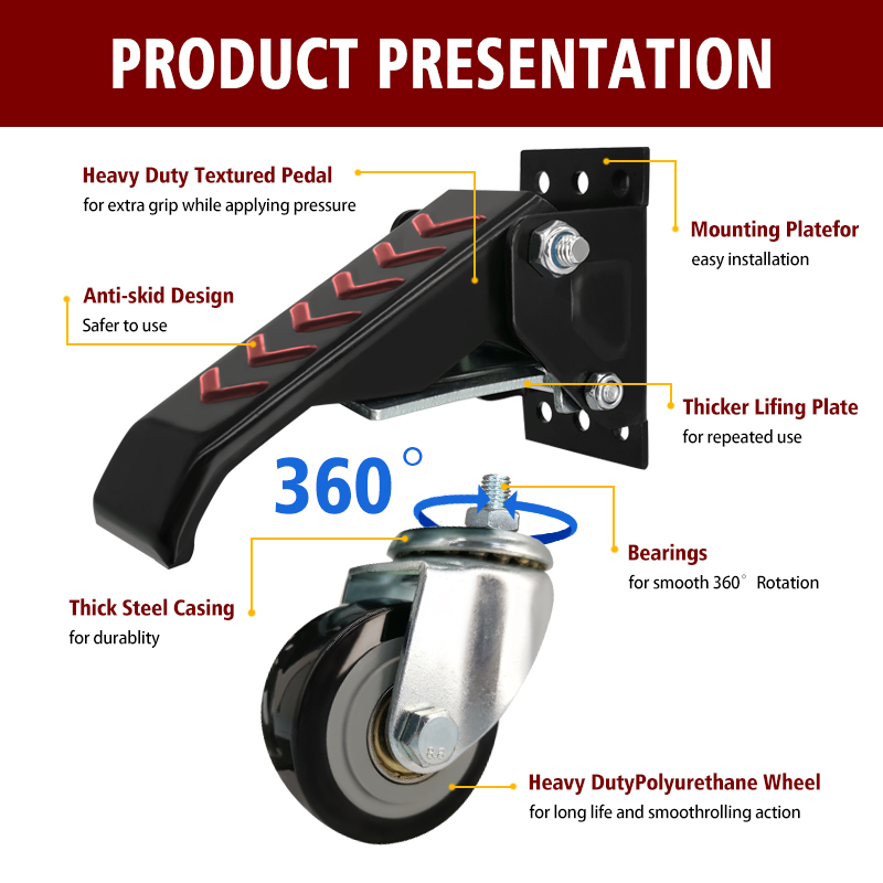 Set of 4 2.5 Inch Workbench Kit Heavy Duty Retractable Side Mount Durable Heavy Duty Bench Caster Wheels |